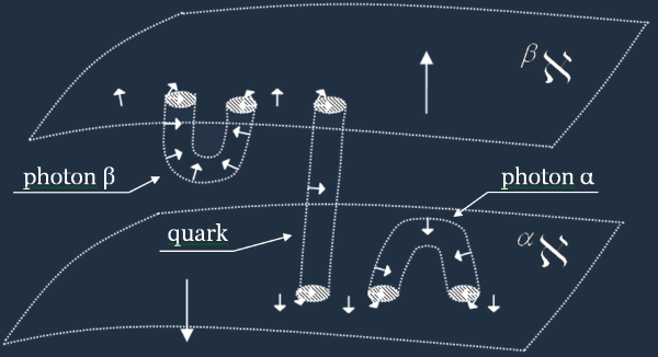 | Elementary particles » Elementary particles are disturbances of space in the form of vortices that connect boundary hypersurfaces (see space channels and quarks) » Quark is a single disturbance of space in the form of vortex that connect different boundary hypersurfaces » Space channel is a single disturbance of space in the form of vortex that connect boundary hypersurfaces |